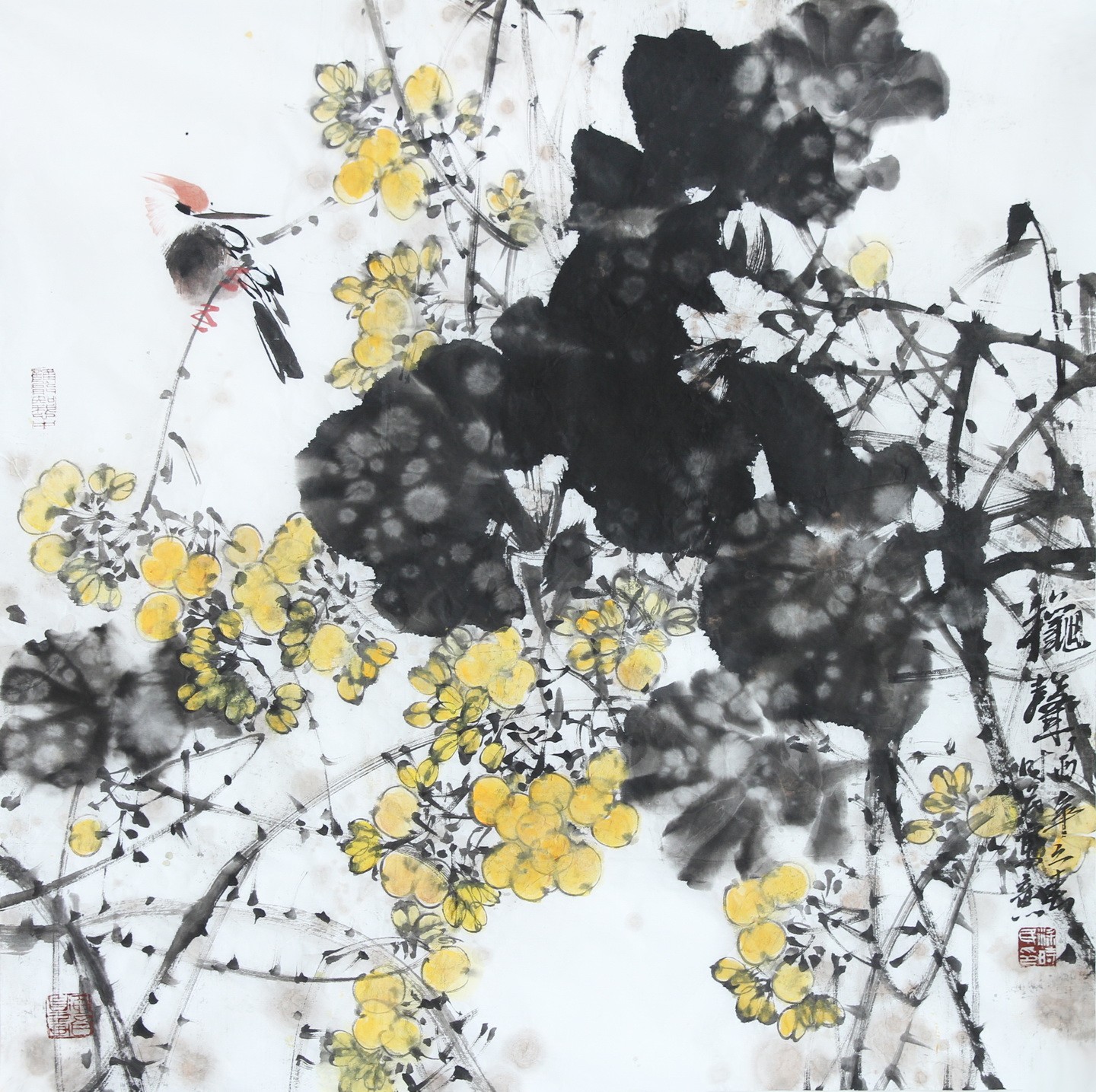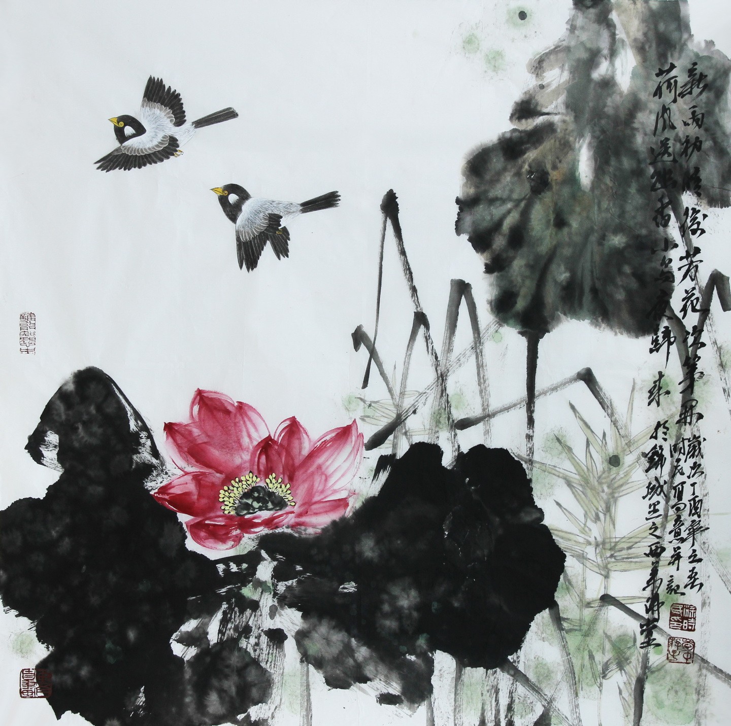 标题:荷风送幽香小鸟初啼 新雨初晴后芳花次第